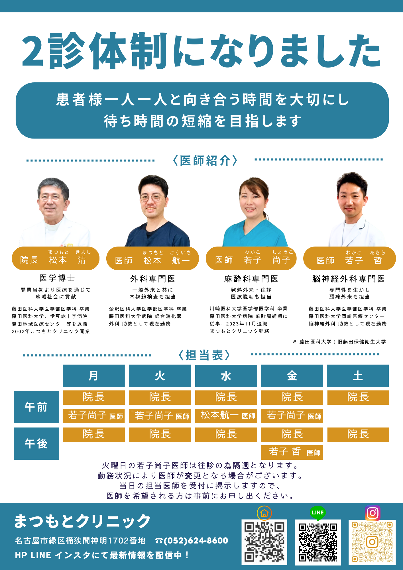 2診体制になりましたのでご案内いたします。