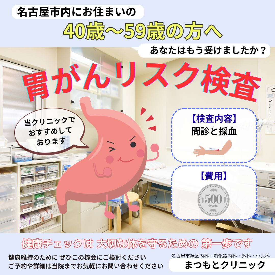 当院では名古屋市内にお住まいの40歳~59歳の方へ胃がんリスク検査をおすすめしております。