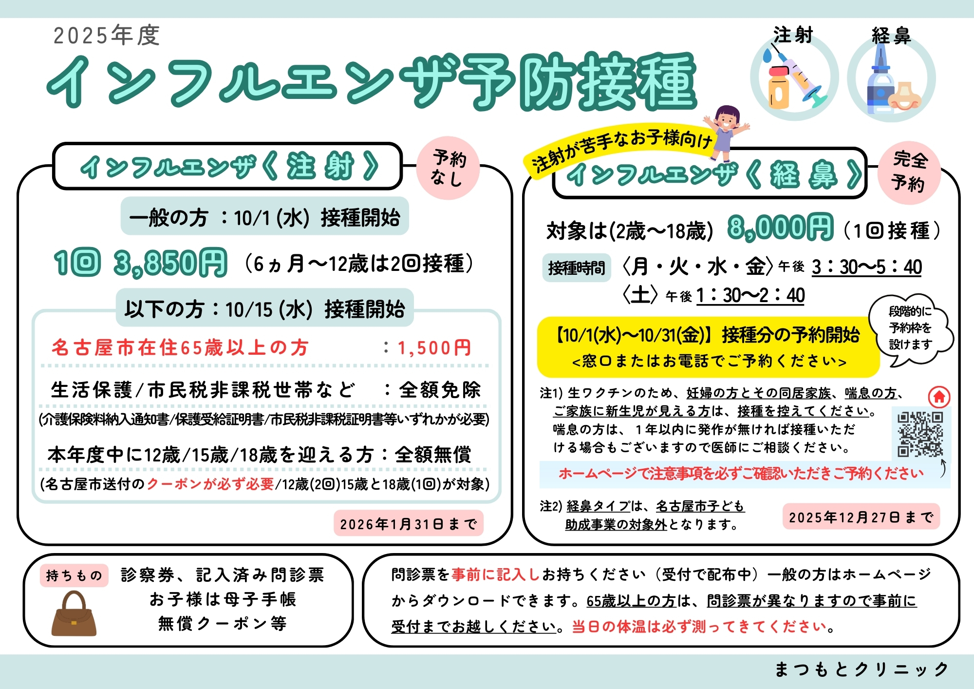2025年度のインフルエンザ予防接種は終了いたしました。(2026年1月6日更新)